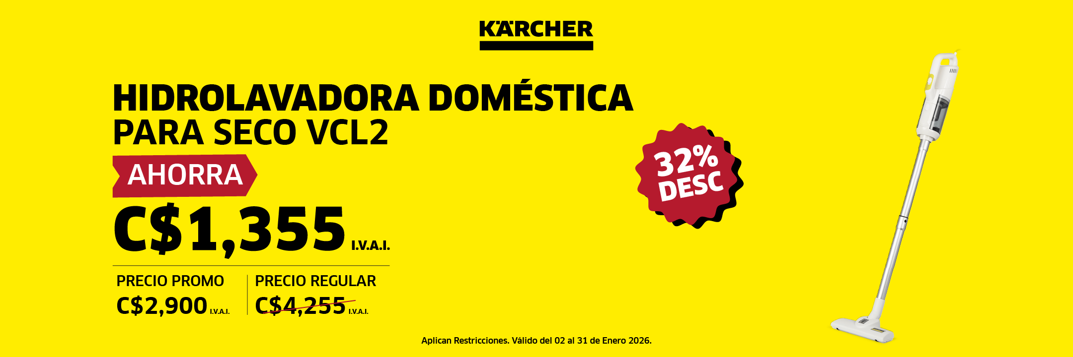 Aspiradora 2 en 1 modelo VCL 2: Aspiradora vertical tipo stick y aspiradora de mano VCL 2Kärcher